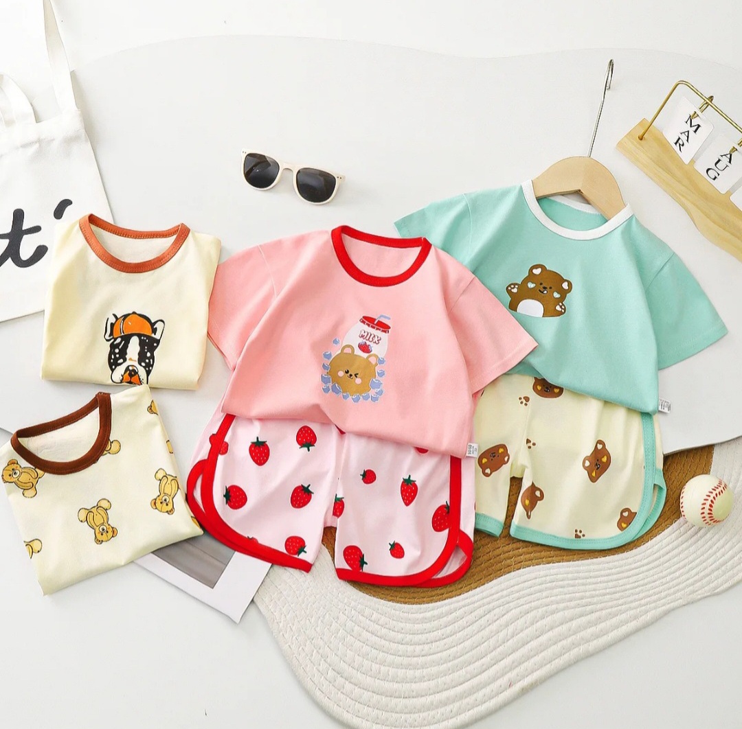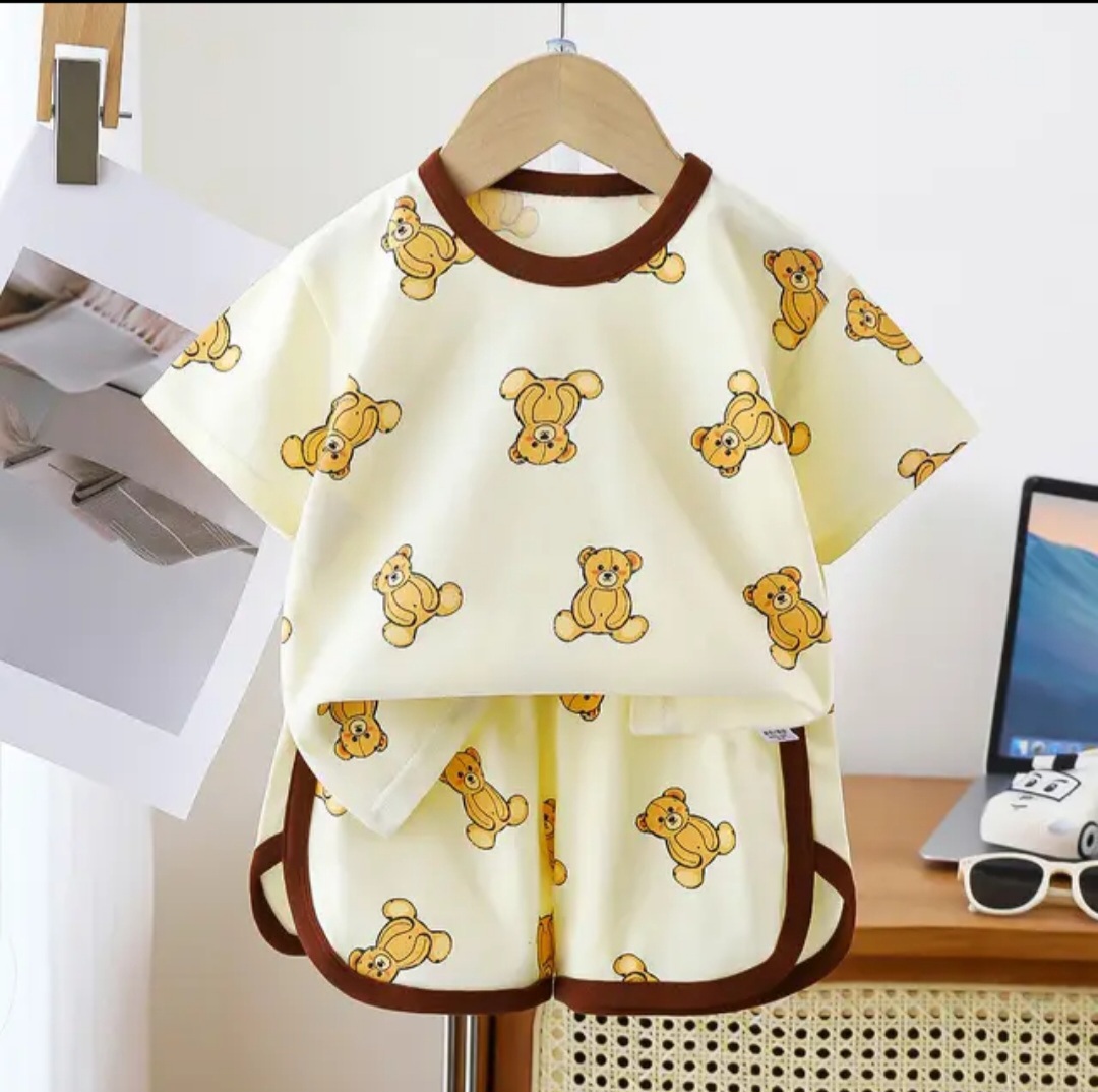 لباس راحتی با پارچه نخ پنبه بدون حساسیت و پرز دهی چاپ ثابت و بدون رنگ دهی در ۴ طرح کیوت و زیبا